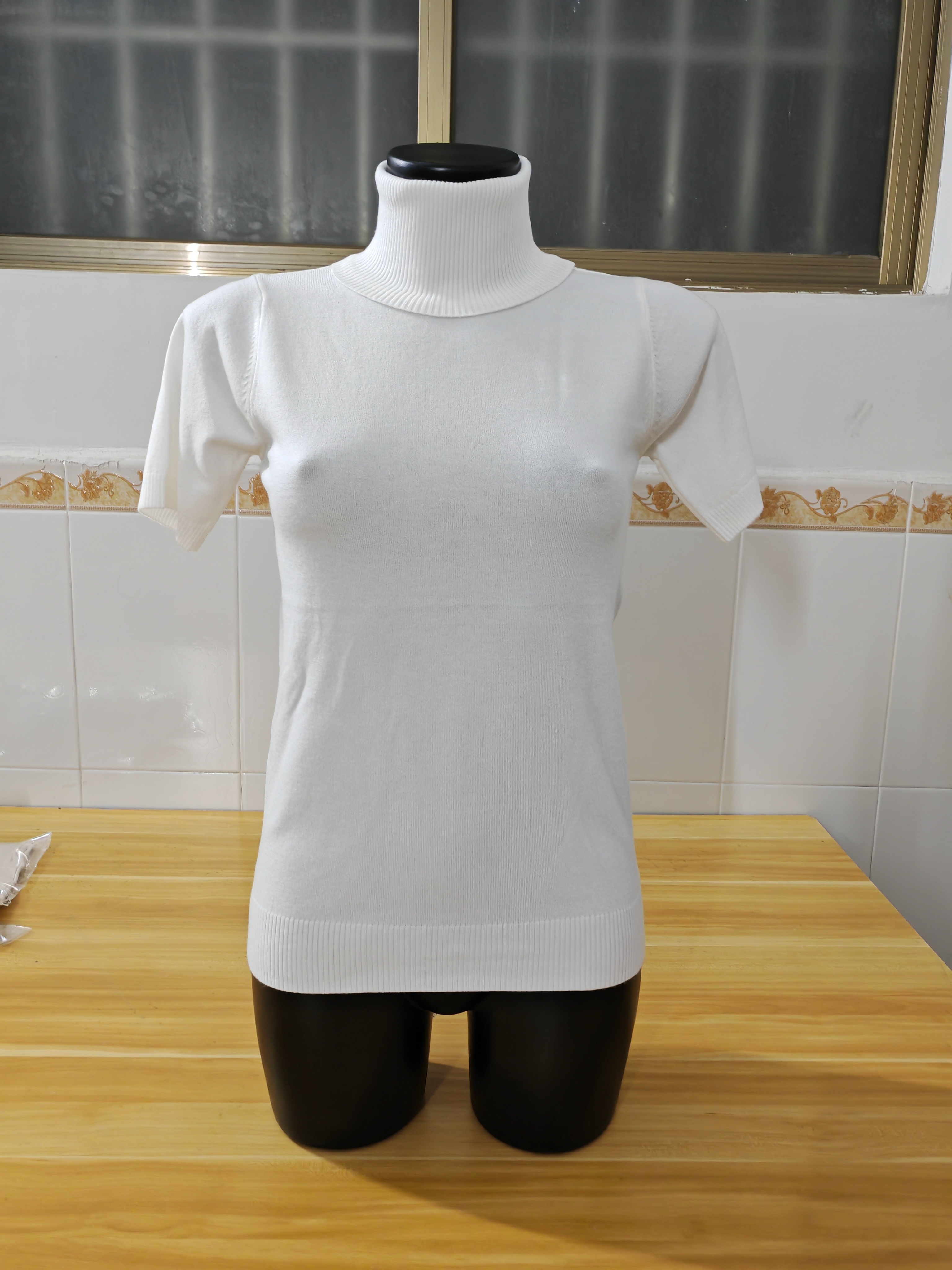 2025 New High-Neck Short-Sleeved T Shirt Pit Strip Knitted Bottom Tight Top (9 Colors) H1016